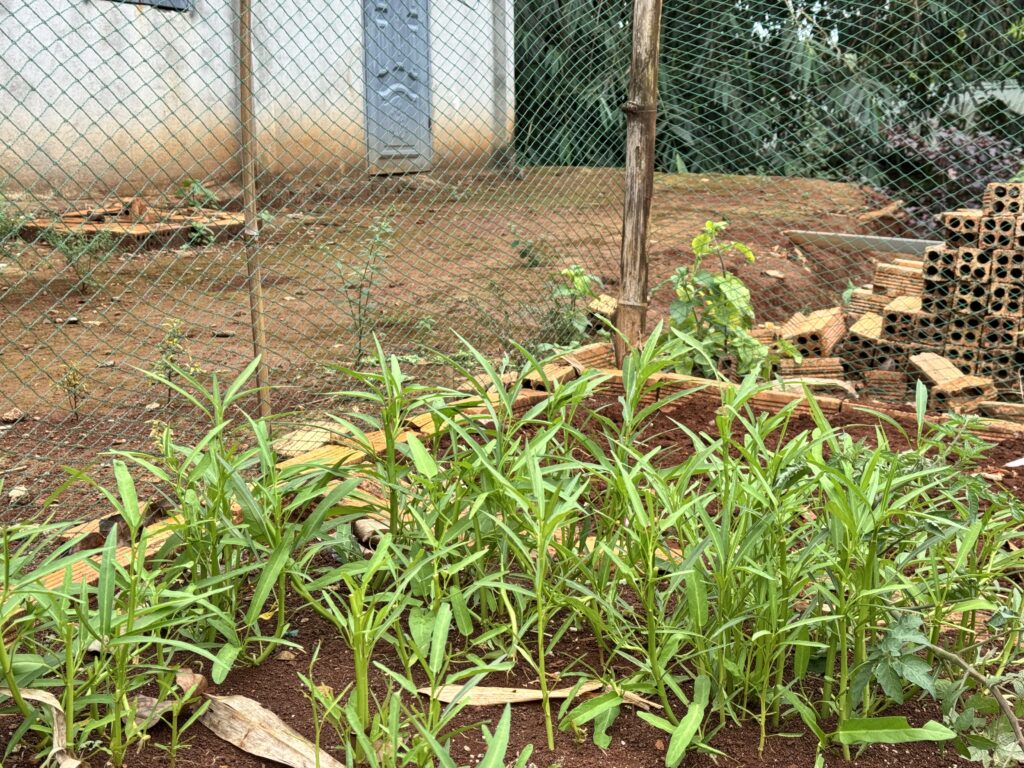 Nhóm cũng ghé thăm vườn rau được trồng từ tháng 9. Rau muống, cải xanh và mồng tơi phát triển tốt; một số luống đã có thể thu hoạch đợt đầu. Nhóm hỗ trợ tỉa rau, làm cỏ và bổ sung hạt giống để các em tiếp tục duy trì, góp phần cải thiện bữa ăn hằng ngày của các em.