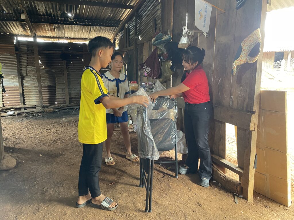 Trong hai ngày 22–23/11/2025, Nhóm Nụ Cười đã đến Trường TH & THCS Vừ A Dính để trao các phần quà gia dụng do mạnh thường quân đóng góp cho 5 em thuộc chương trình Cùng Em Lớn. Các phần quà gồm bàn học, ghế, đèn bàn và một số vật dụng ăn uống như chén, đũa, muỗng – được lựa chọn theo nhu cầu thực tế của từng em, đảm bảo thiết thực và hỗ trợ trực tiếp cho việc học tập, sinh hoạt hằng ngày.