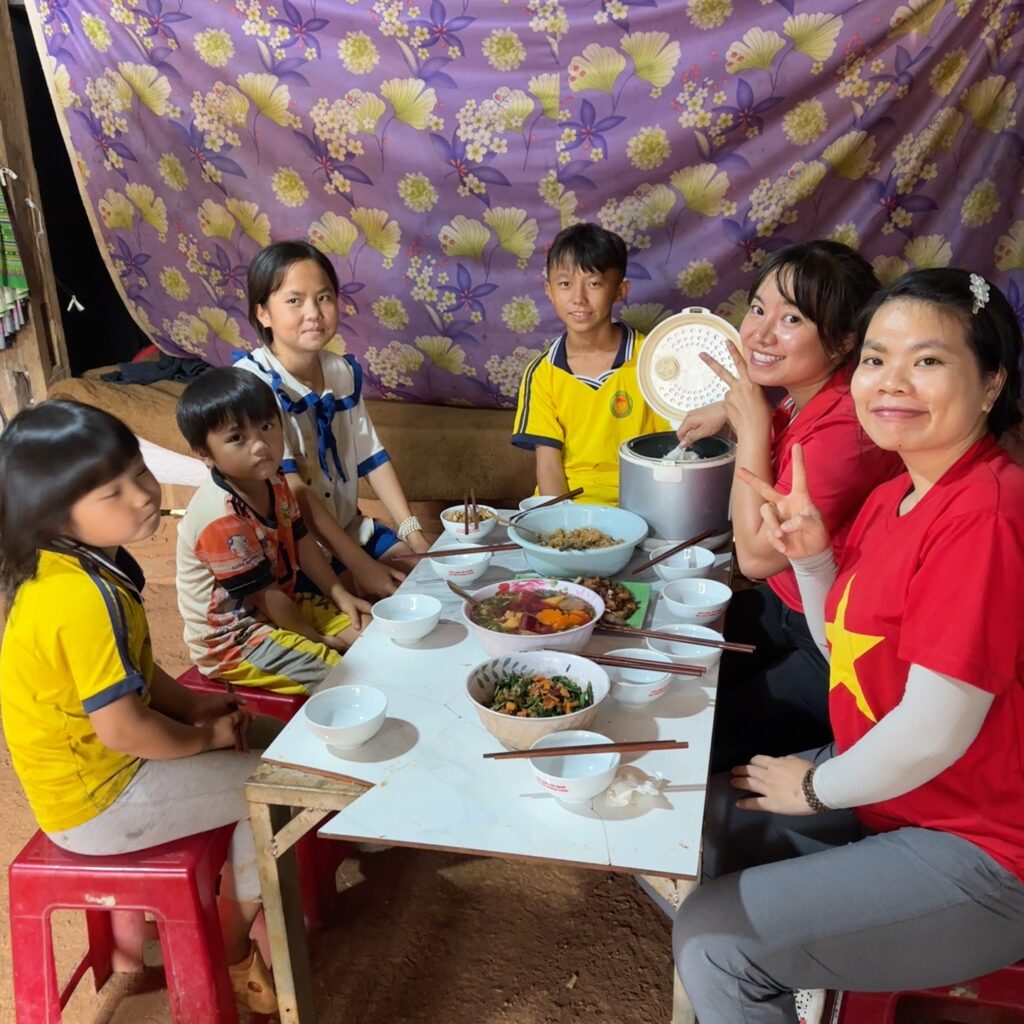 Trong chuyến thăm, nhóm dành thời gian cùng các em nấu bữa trưa, chuẩn bị nguyên liệu và sắp xếp lại khu vực sinh hoạt. Những hoạt động giản dị nhưng mang lại sự gần gũi, giúp các em thêm tự tin và tạo kết nối tích cực với nhóm.