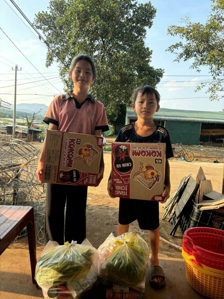 Mỗi túi quà gồm gạo, sữa, đồ dùng cá nhân và các nhu yếu phẩm khác – tiếp tục mang đến sự đảm bảo cho bữa ăn, sinh hoạt và việc học của các em, ngay cả trong những ngày hè vắng tiếng trống trường.