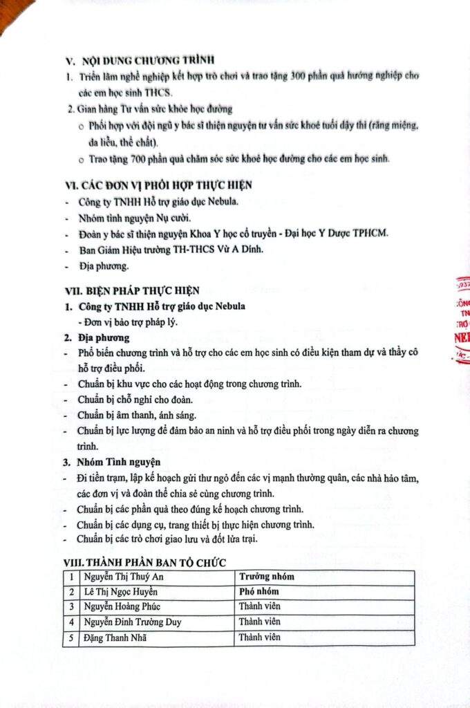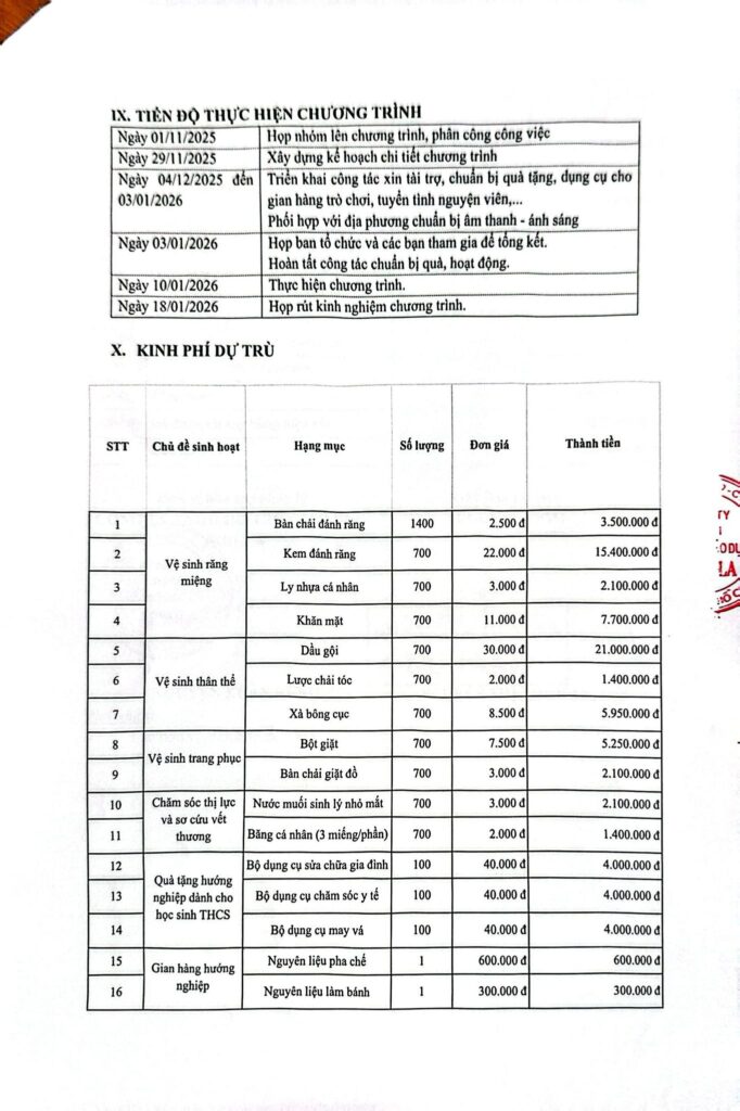 Để chương trình được triển khai trọn vẹn và đảm bảo an toàn, kinh phí dự trù là 170.970.000 đồng, bao gồm chi phí vận chuyển, quà tặng, trang thiết bị y tế, vật dụng tổ chức và hậu cần cho đội ngũ thiện nguyện.